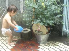 朝から水遊び。たぷ~んとしたおむつが重そうです
