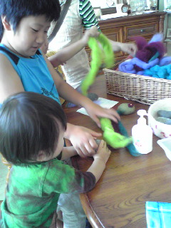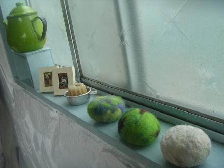 中に入ると、フエルトのペーパーウエイト作りをしている方が・・・。