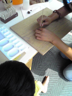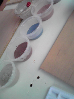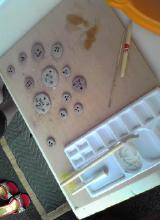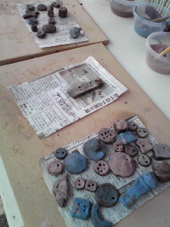 できたてのペーパーウエイトを乾かす・・・の図。2日位で乾くそうです。