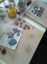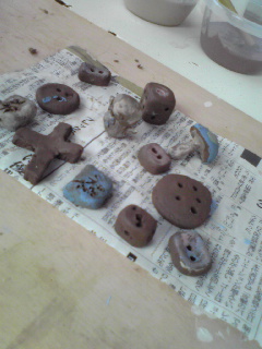 春の陶器市で、次男が気に入って、一生懸命選んだ陶器のボタン。