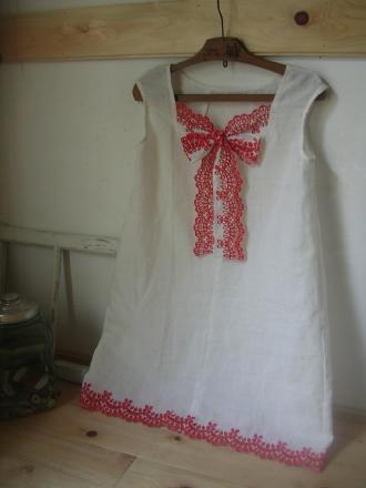 カットワークの生地を生かしたくて、とも布で作るリボンをレースにしてみました。
