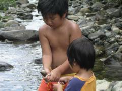 マスのつかみ取り大会。そして川遊び。バーベキュー。