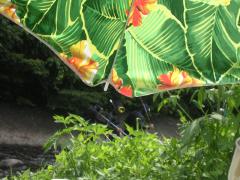 早起きのよっちゃんパパが早朝から川の浅いところをせきとめてくれました。感謝。(うちのパパは??今日は焼き係だったそう)