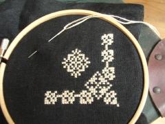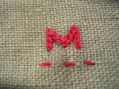 リネンの側にはチェーンステッチでアルファベットをチクチク。