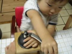 三男、ちょっとお兄ちゃんになって押さえていればお豆が挽けるようになりました。
