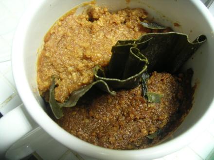 その方は赤味噌と白味噌を昆布でしきって入れていて、