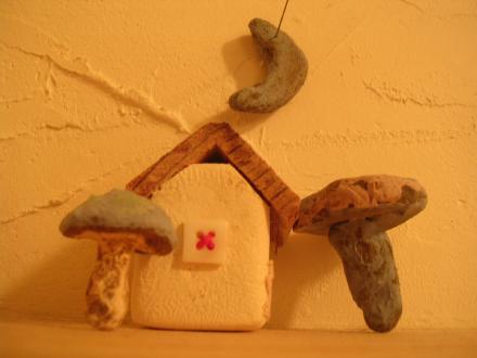 お月さまと右のきのこは次男作、左のきのこは長男作。