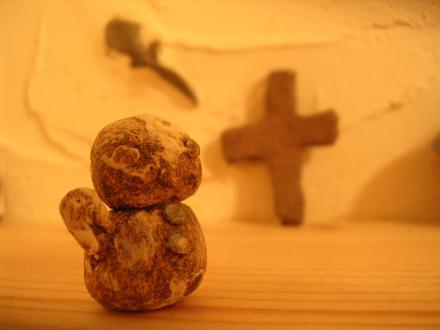 こちらは長男作の雪だるま。奥にあるのはクロス。