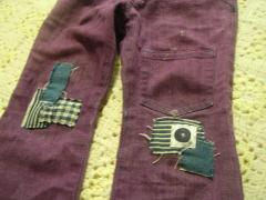 端切れを重ねて、ひざの穴隠し^^。