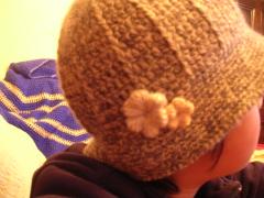 久しぶりにみた帽子はかわいくて、紐で調節すればかぶれます。