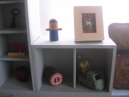マルシェローブがアンティークの家具や雑貨のそばにかけられていて