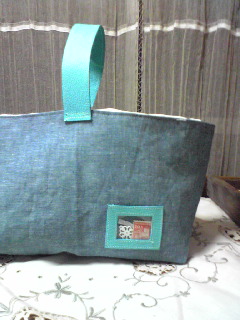 ワンハンドルの持ち手とポケットは革です。