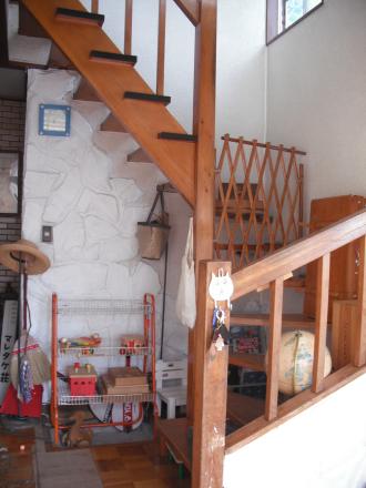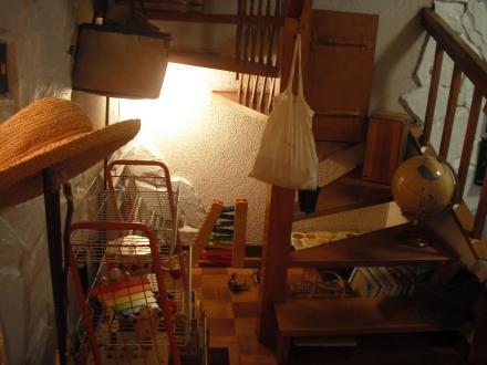 入口。大人はしゃがまないと階段に頭をぶつけちゃうよ。