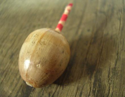 ヒモはレース糸を鎖編みした物。先にシェルパーツをつけました。