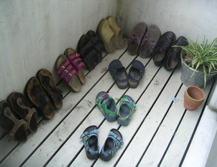 すのこの上にビルケンが2足転がっていて