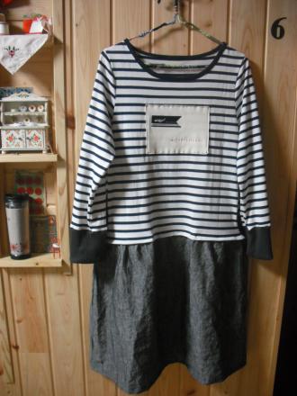 自分用に同じタートルフードのパターンのアレンジでワンピースを作りました。