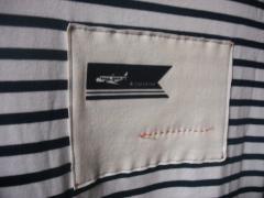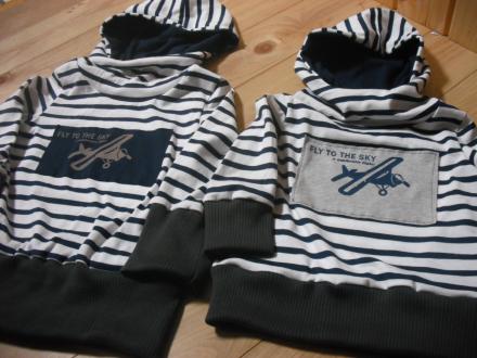 乗ってきたので、もう1着、ぶどう色のボーダーでフード付きバージョンをつくりました。