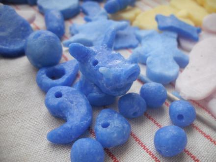 数珠にすると、穴を開けた玉をたくさん作り、まわりが片付け終わっても夢中で作っていました(笑)大人も夢中になるおもしろさです^^。