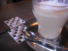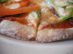 パリッパリのそば粉のピザにカフェラテ。