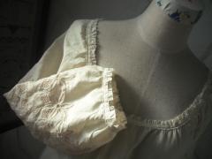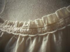 私の感想ですが、ピシっとプレスされたレースも潔くて気持ちいいけど、お洗濯後のちょっと詰まってくたっとしたレースの感じもかわいいなぁ、と思います。