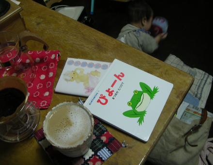 画像はお土産の絵本と、無性に飲みたくなったコーヒー。