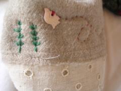 まさか、100年まえのフランスの田舎町のお母さんが自分の刺しゅうしたクロスを、100年後、誰かの家のお台所で使われていたり、小さな布小物になっているなんて、想像もつかないですよね。