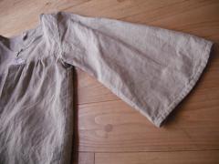袖が広がっている形です。ギャザーたっぷりのワンピースのボリュームをおさえたいとき、こういう形、便利なんですよね^^。
