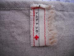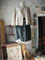 ベージュの綾織りのリネンを使いました。縦長に糸が通るので平織りよりもつるんとしたかんじです。