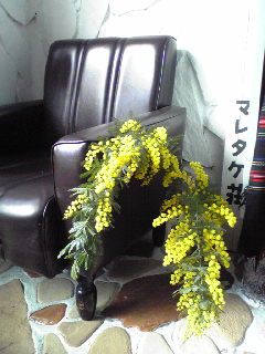 お庭で満開のミモザ談義にも花が咲いて、お土産にいただいたミモザちゃん。