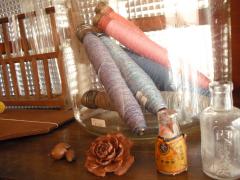 鎖編みをくるくるまるめてとじて小さなバックを作ったり、鍋つかみを作ったり。