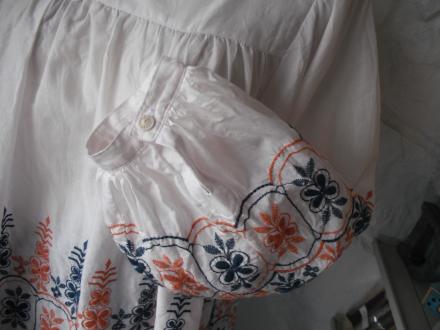 bellybuttonさんのカットワークレースをヨーク部分とカフスに使いました。