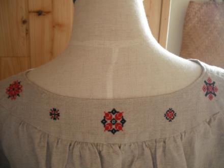 マルシェローブを作ると、ついつい、ヨークに刺繍を入れたくなります。