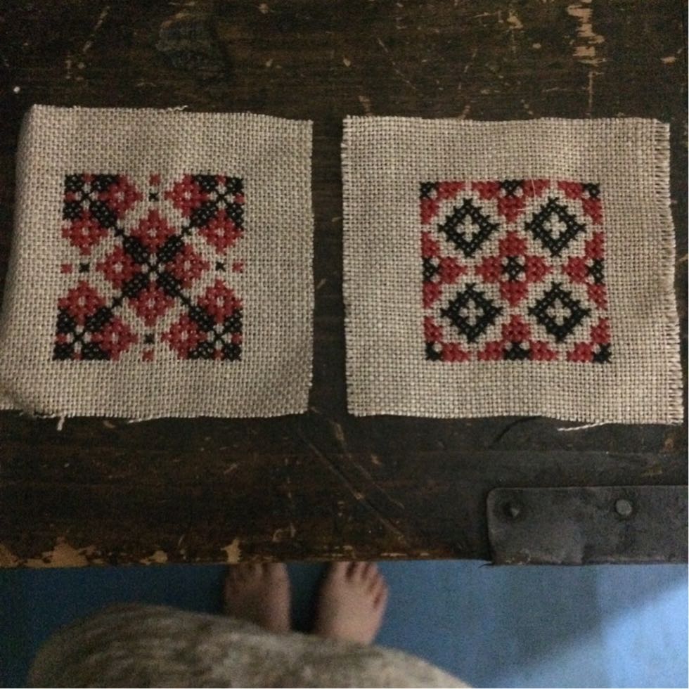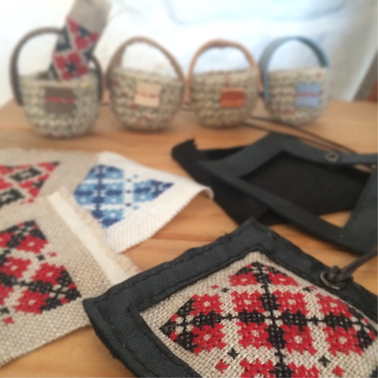 どこに行くにも持ち歩く刺繍セット(編み物セットの時もある)小さなちいさな1、2、3の刺繍をしながらちょいとお出かけ(*^^*)