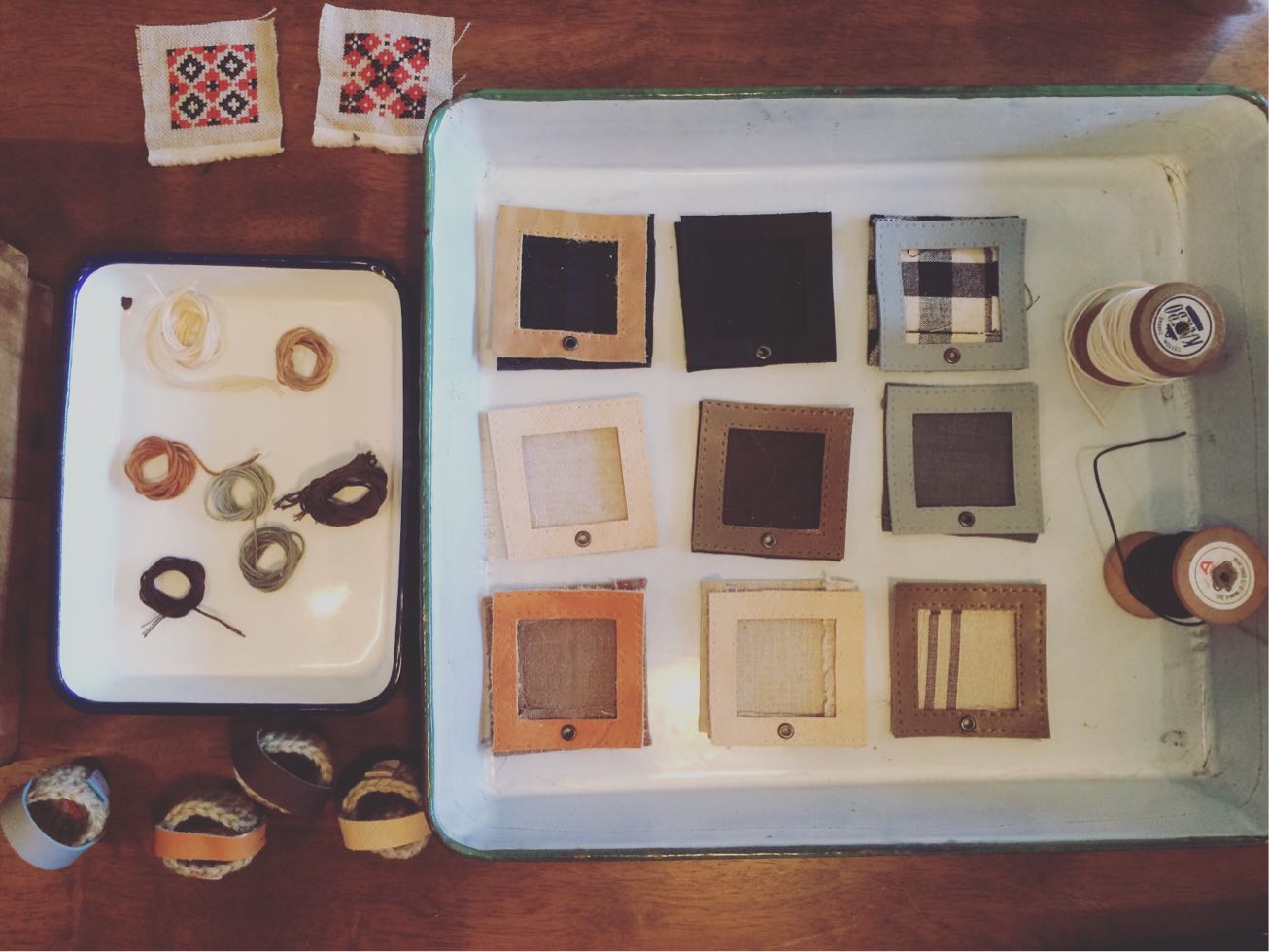 色を合わせたリネンと革のフレーム