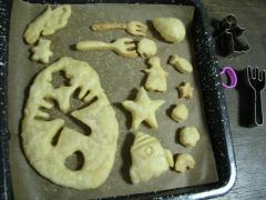 ハートに抜いた残りを長男に預けたら、色々な抜き型でこんなのできました。