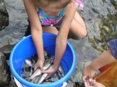 魚も必死に逃げるので、なかなかつかまらなかったけど、